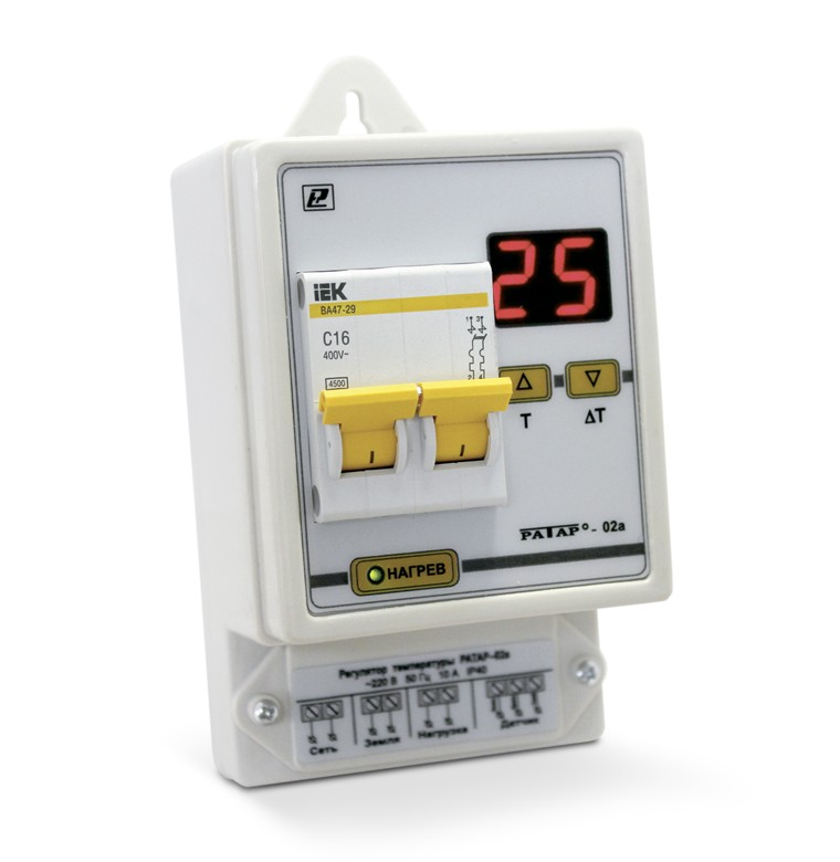 Терморегулятор Ратар-02A-1 со встроенным автоматом включения нагрузки 16А применяется для бытового и промышленного использования, например, для контроля и поддержания температуры в небольших жилых и производственных помещениях, гаражах, складах, погребах, для управления нагревателями, термокамерами, тепловентиляторами, ИК-нагревателями, конвекторами и т.д. Ратар-02А-1 - это бюджетный российский терморегулятор с широкими возможностями.