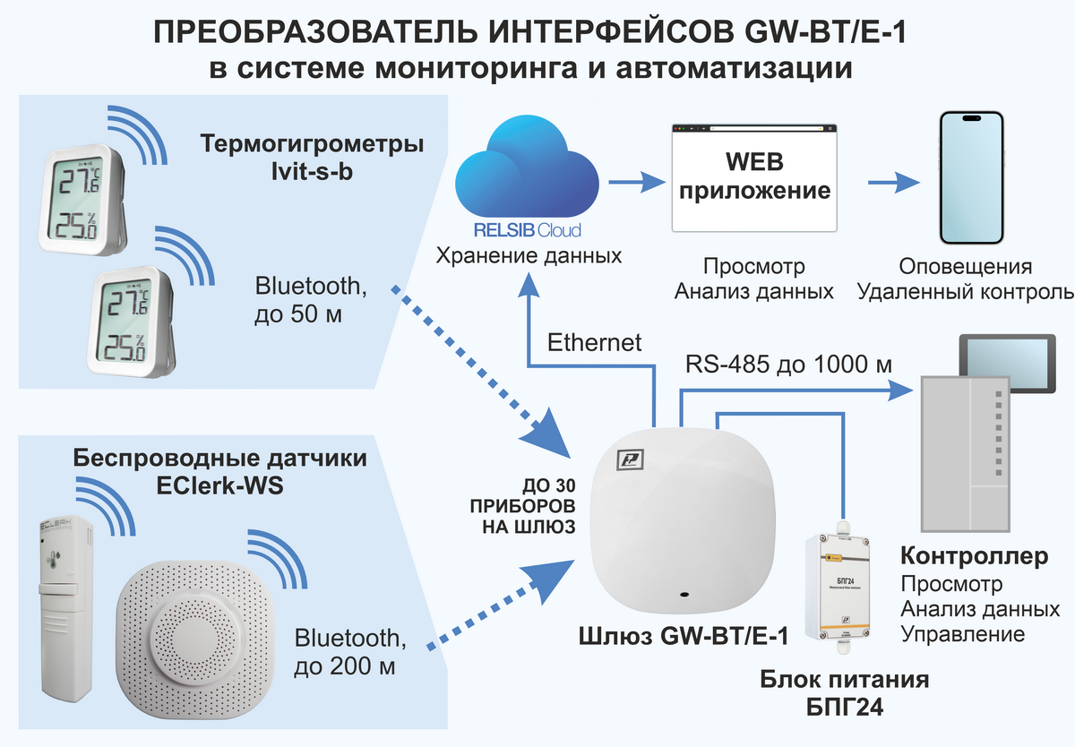 Пример применения беспроводных датчиков EClerk-WS в системе мониторинга