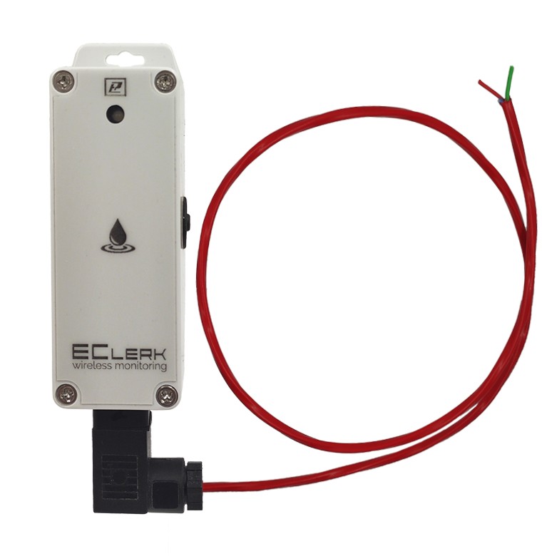 Датчики EClerk-WS-L-I предназначен для непрерывного контроля протечки, с заданной периодичностью и передачи измеренных значений по радиоканалу. Датчик имеет различные исполнения по мощности выходного сигнала, по типу работы (в широковещательном режиме или с соединением с приёмником). Длина кондуктометрического кабеля - 1 м.