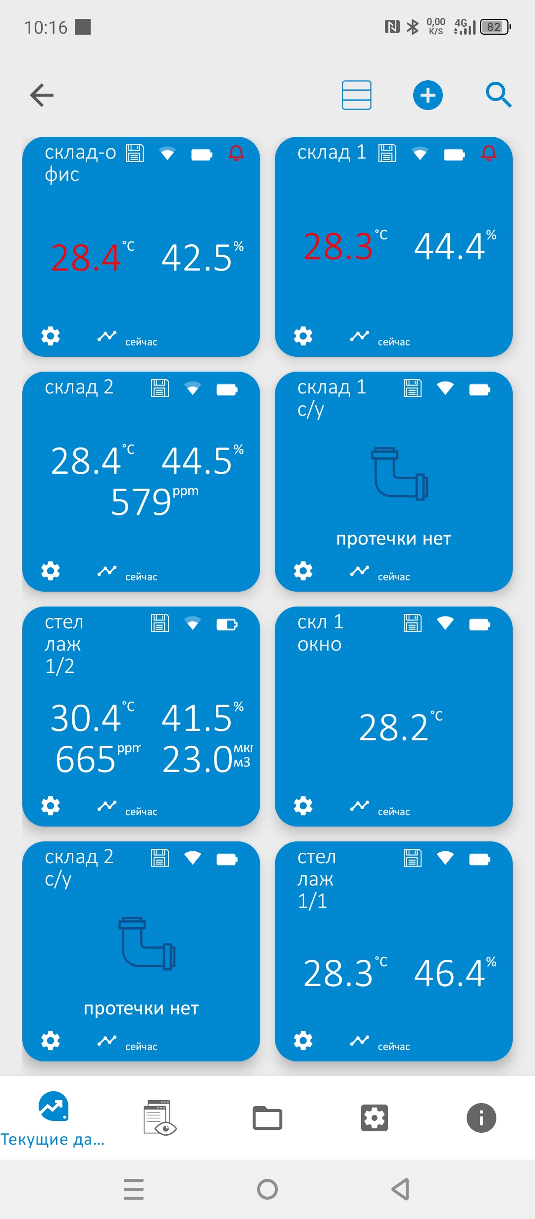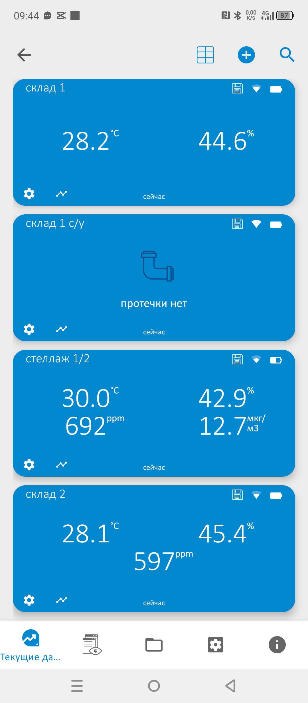 Приложение позволяет одновременно контролировать параметры с большого количества приборов (неограниченное количество отслеживаемых объектов, отображение до 12 объектов на главном экране). Архив данных ведётся по созданным пользователем объектам контроля. К объектам контроля «привязываются» датчики. Таким образом при смене датчика, архив данных не меняется. Например: температура в холодильнике, температура и влажность в лаборатории и т.д. Приложение предусматривает возможность разбиения единой базы данных на отдельные файлы с заданным временным периодом от 1 ч. до 1 месяца.
