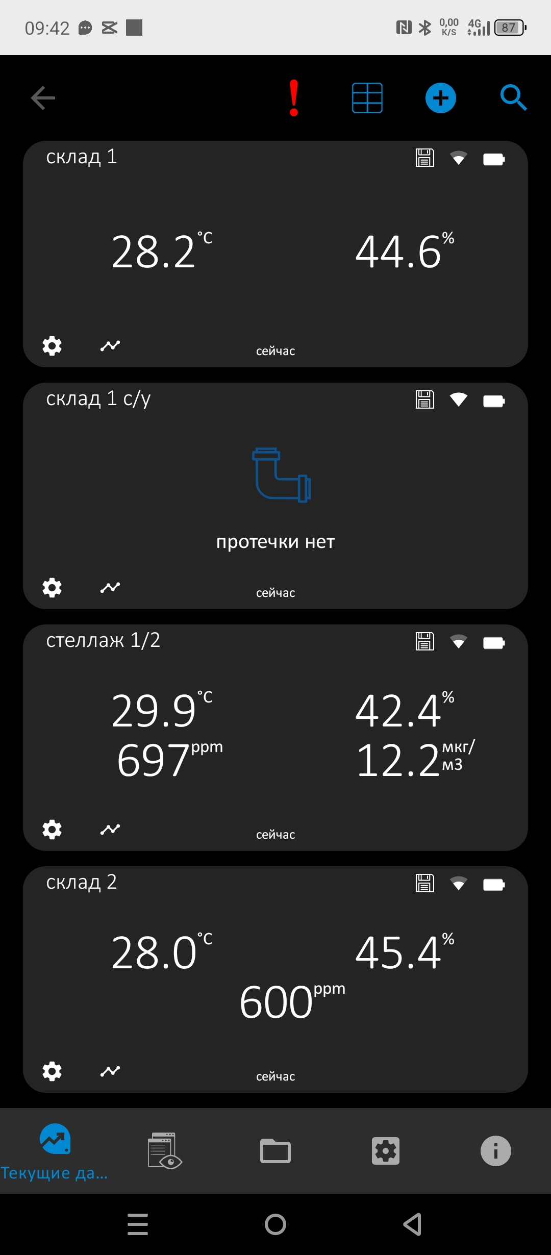 В Приложении можно задать до 2-х порогов сигнализации по каждому измеряемому параметру.
