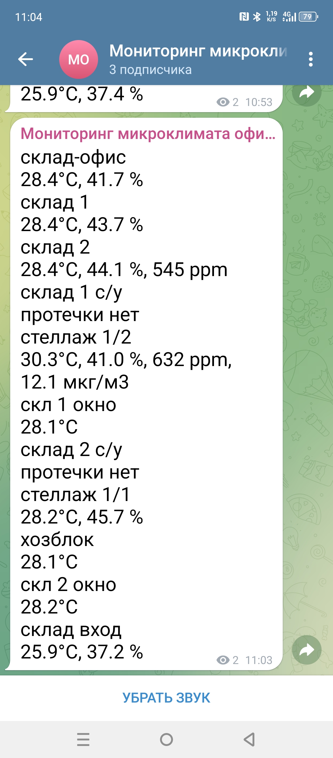 Также в Приложение включена функция уведомления о текущих данных и аварийных ситуациях в Телеграмм канале.