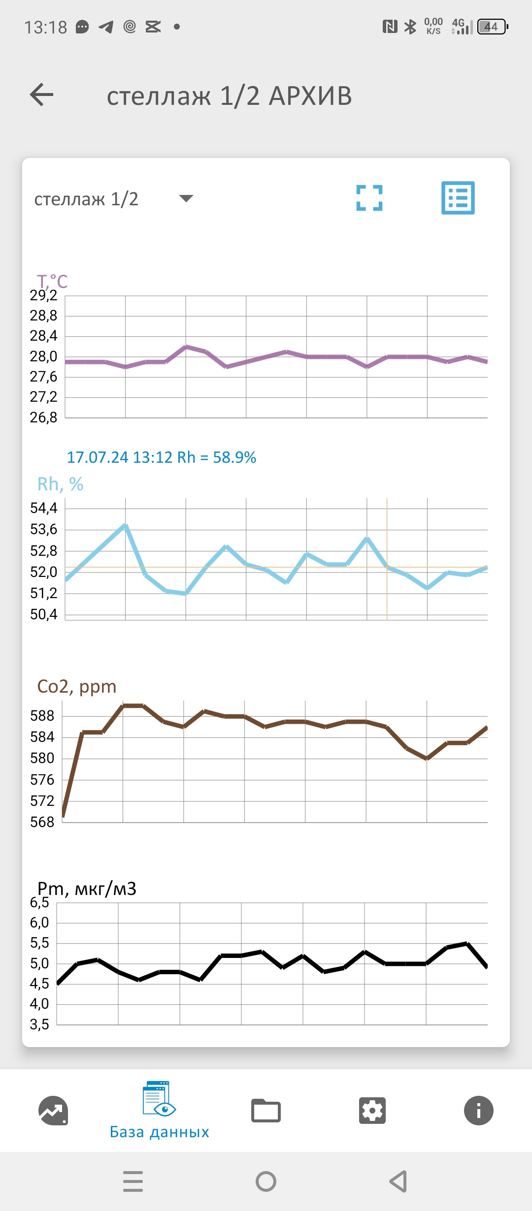 Приложение позволяет представлять данные в виде таблиц и графиков, готовить Отчёты об измерениях за заданный период с выбранных обьектов контроля.