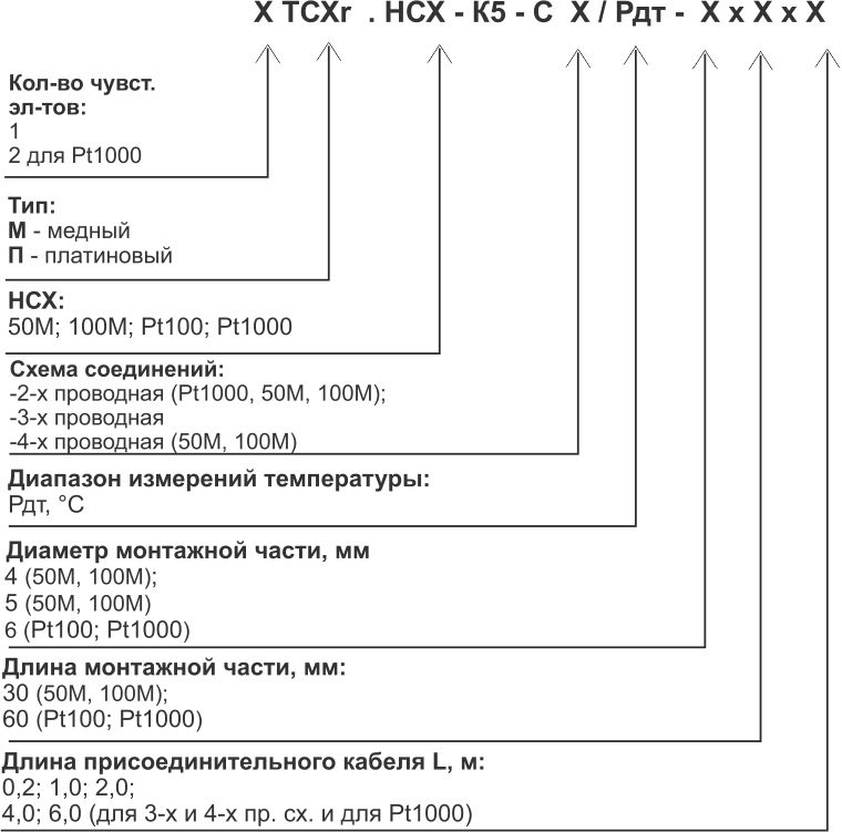 | Диаметр монтажной части, d, мм | 4 (50М, 100М); 5 (50М, 100М); 6 (Pt100; Pt1000) |