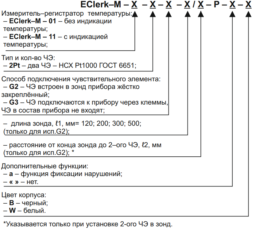 | • G2 - первый чувствительный элемент – термопреобразователь сопротивления Pt1000 - встроен в зонд регистратора, второй чувствительный элемент находится или в корпусе, или также размещается в зонде на указанном расстоянии от конца зонда (Х2). | ![]() |
