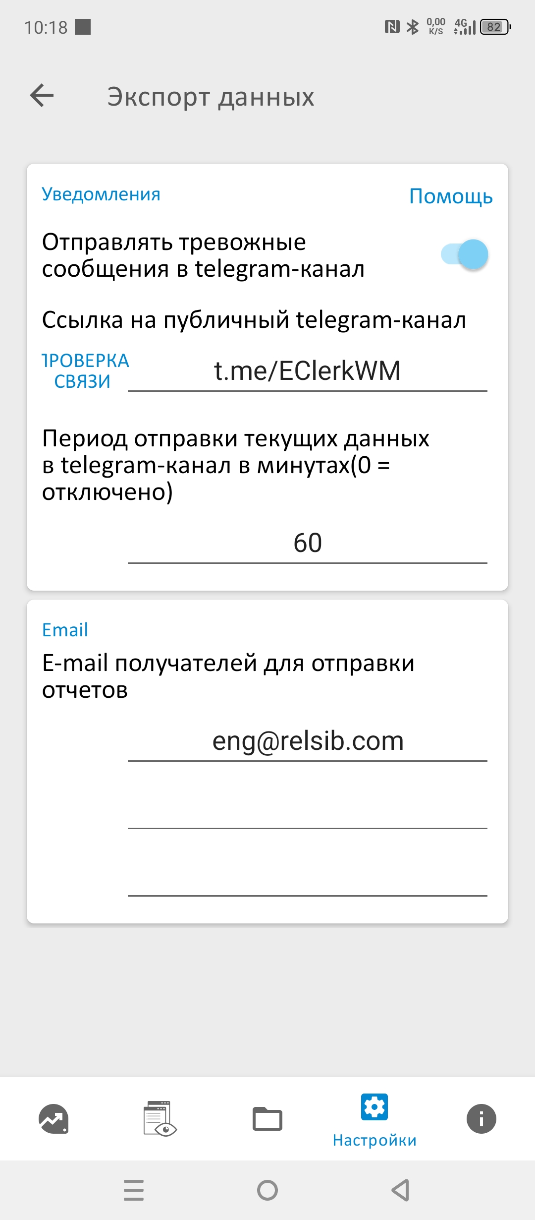 Также в Приложение включена функция уведомления о текущих данных и аварийных ситуациях в Телеграмм канале.