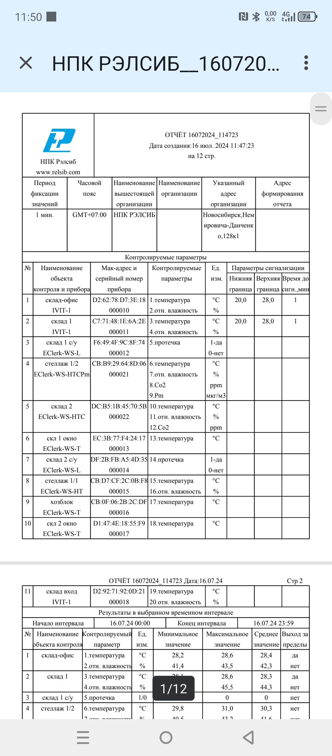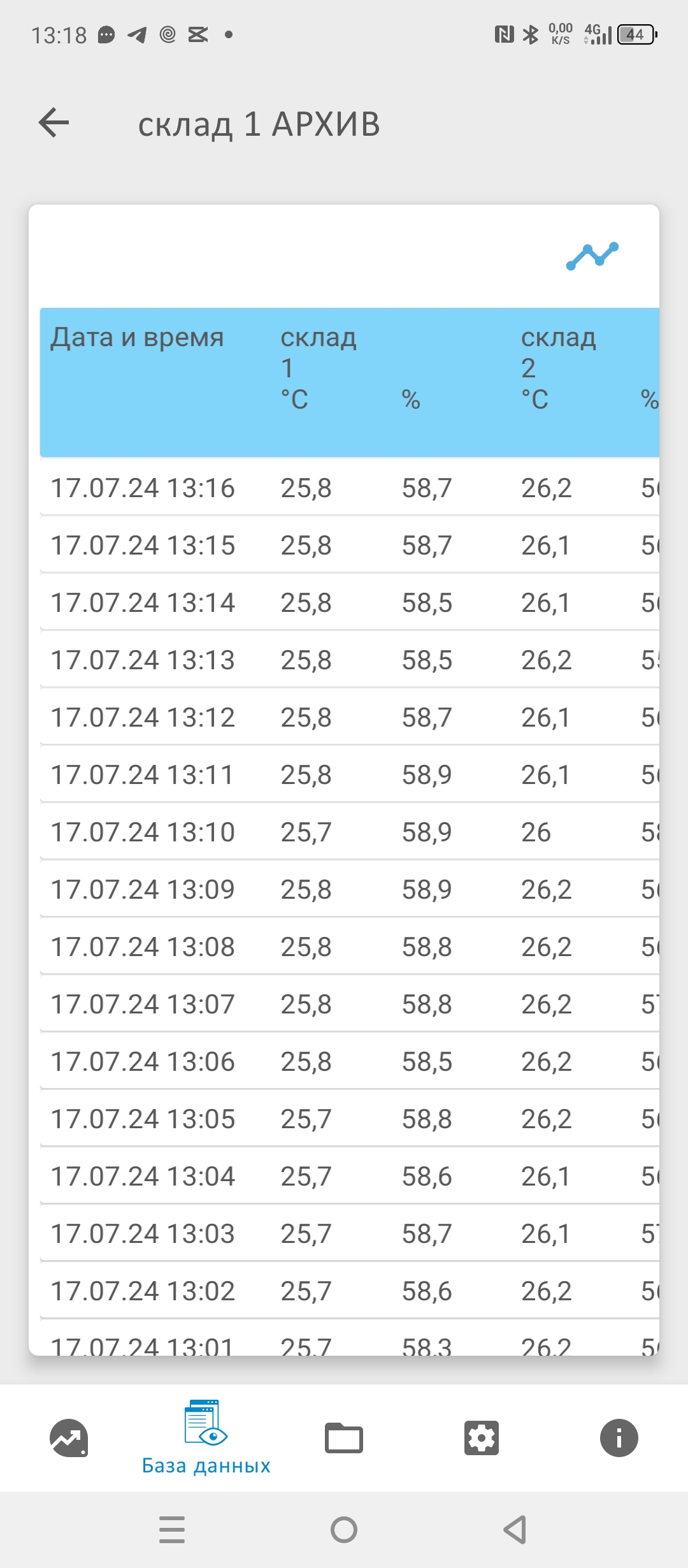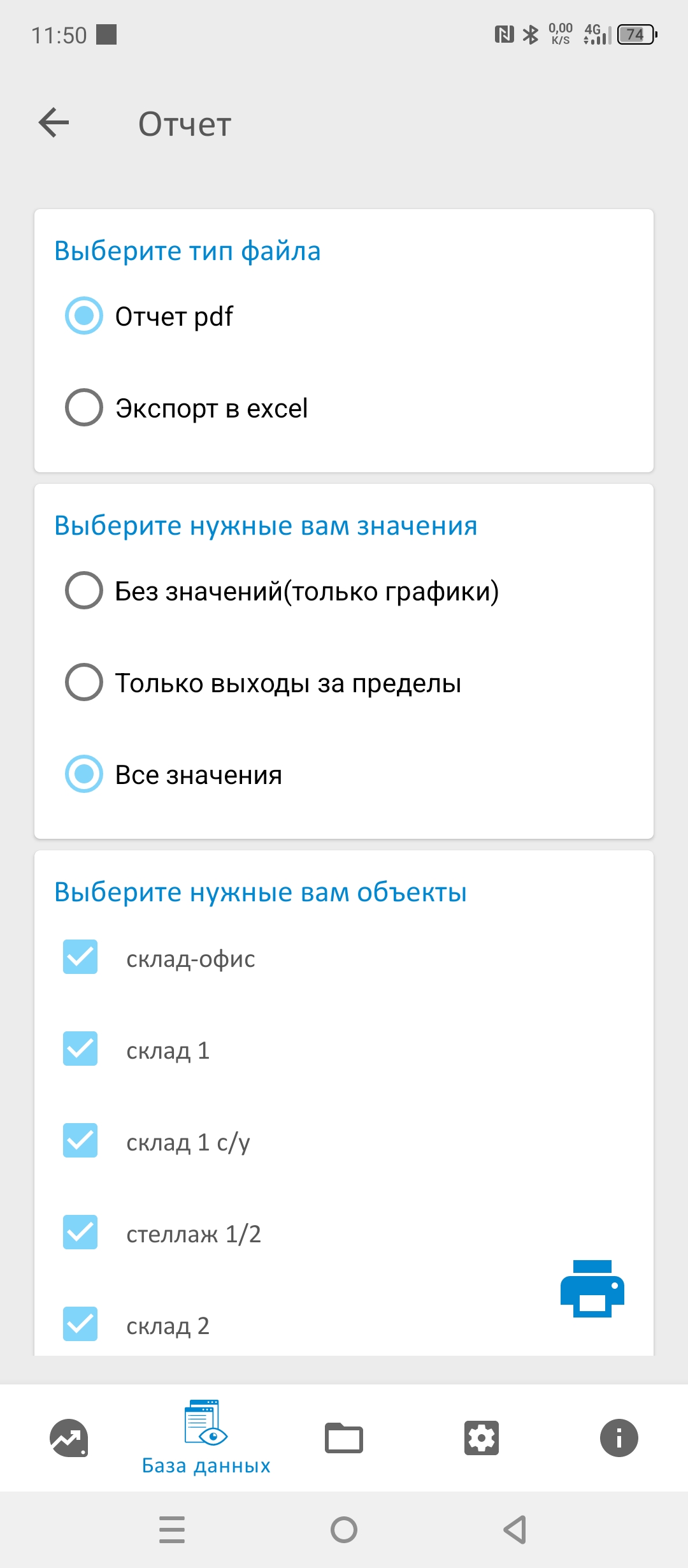 Приложение позволяет представлять данные в виде таблиц и графиков, готовить Отчёты об измерениях за заданный период с выбранных обьектов контроля.
