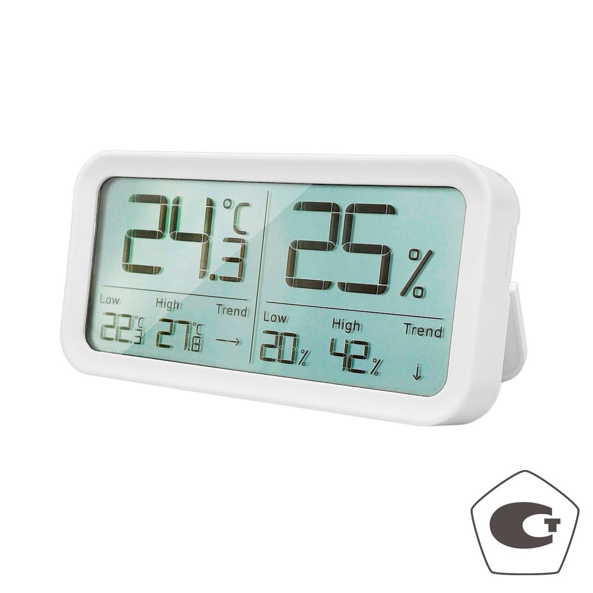 Термогигрометр снабжен большим Ж/К дисплеем  высокой контрастности, занимающим всю переднюю панель прибора. Ж/К дисплей имеет угол обзора 160о, обеспечивающий хорошую видимость показаний с любого места.