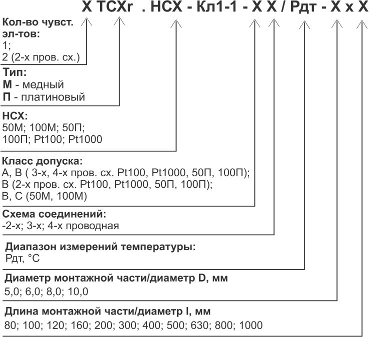 | НСХ | 50М, 100М, 50П, 100П, Pt100, Pt1000 |