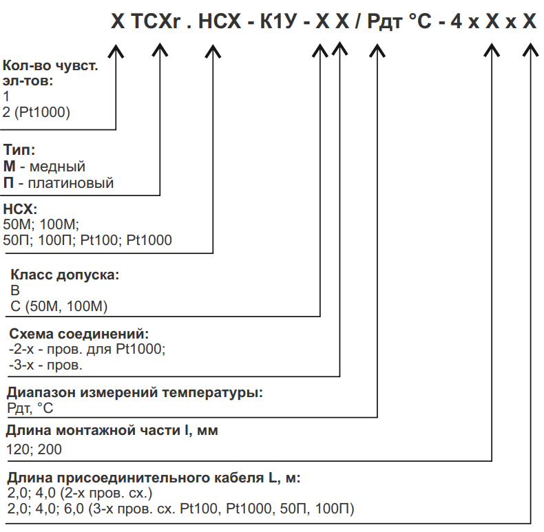 | НСХ | 50М, 100М, 50П,100П, Pt100, Pt1000 |